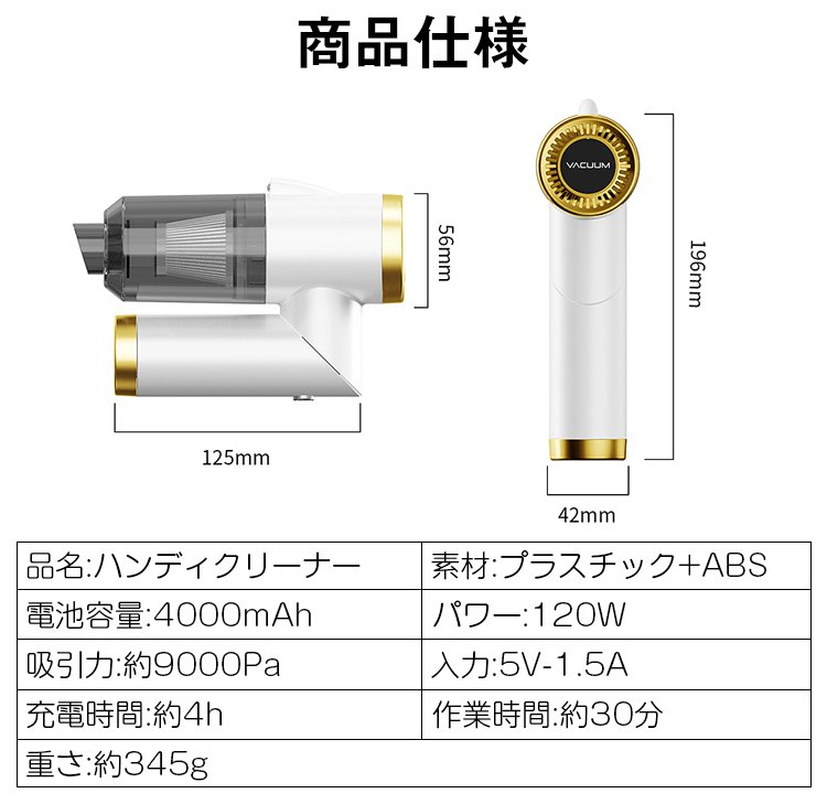 【ハンディクリーナー】コードレスなのにパワフルな吸引力!たくさんのアタッチメント付きで隅々までお掃除♪