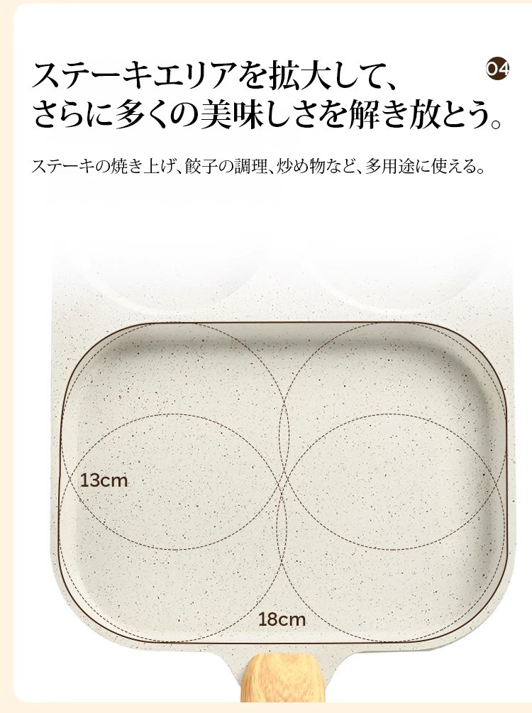 仕切り付き朝食用麦飯石フライパンの全体画像